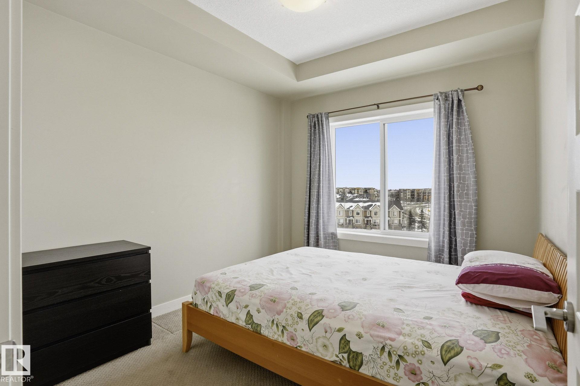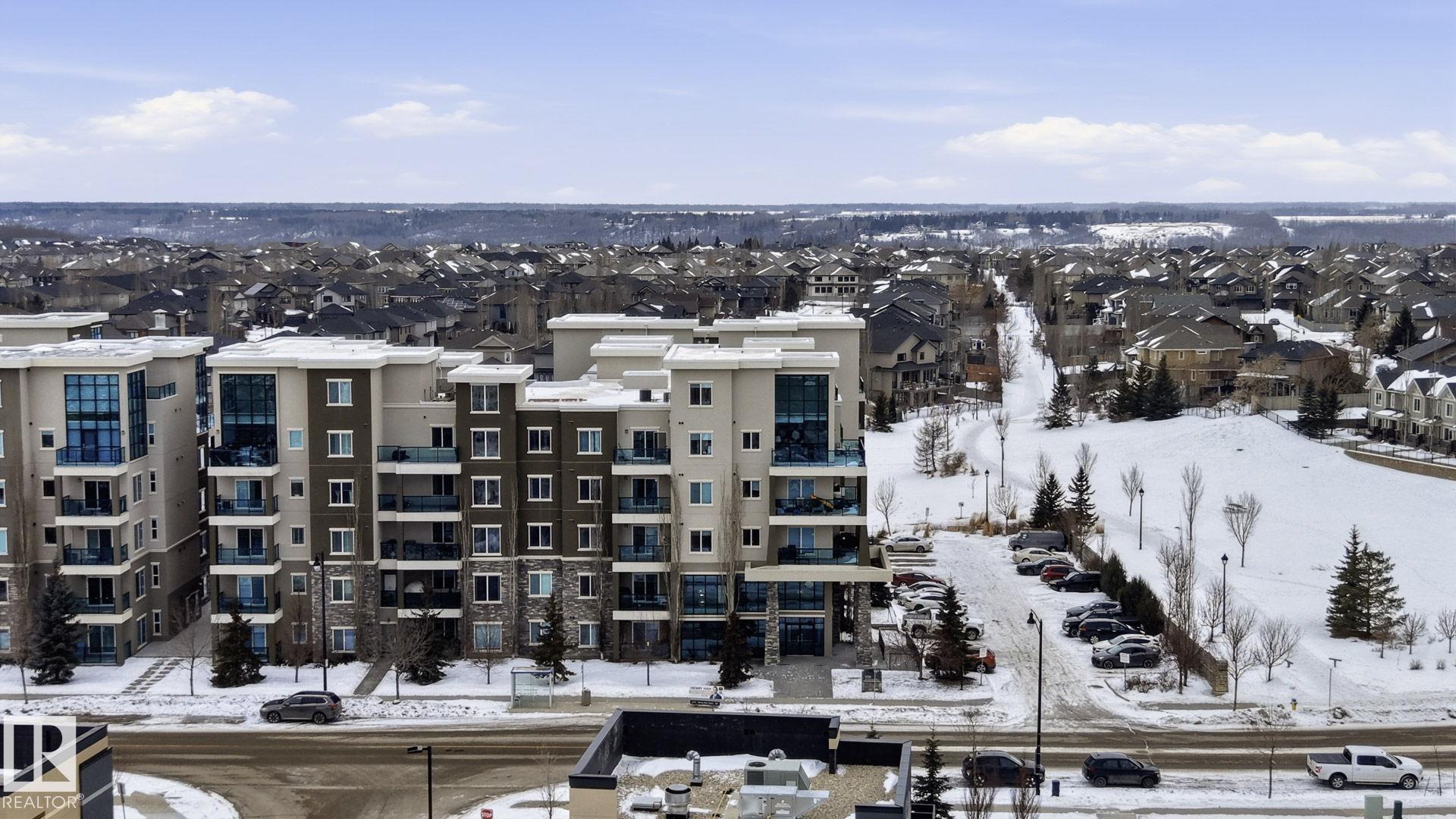 Welcome to this well-maintained top-floor 2 bedroom condo in the highly desirable Windermere community. Built with steel & concrete construction, this building offers superior soundproofing & durability, along with in-floor heating for year-round comfort. The bright open-concept layout features 16' ceilings in the living room & 9' ceilings throughout, creating a spacious & airy feel with floor to ceiling windows allowing plenty of natural light flow through. The modern kitchen overlooks the dining area & is finished with beautiful granite countertops. The primary bedroom features a walk-through closet & 3-piece ensuite while the 2nd bedroom is generously sized & located near the 4-piece main bathroom. This unit includes 2 titled parking stalls (1 underground parking & 1 outdoor). Conveniently located within walking distance to shopping, parks, ponds & public transit everything you'll need is minutes away. You'll also enjoy easy access to Anthony Henday & Whitemud Dr connecting you to the rest of the city!